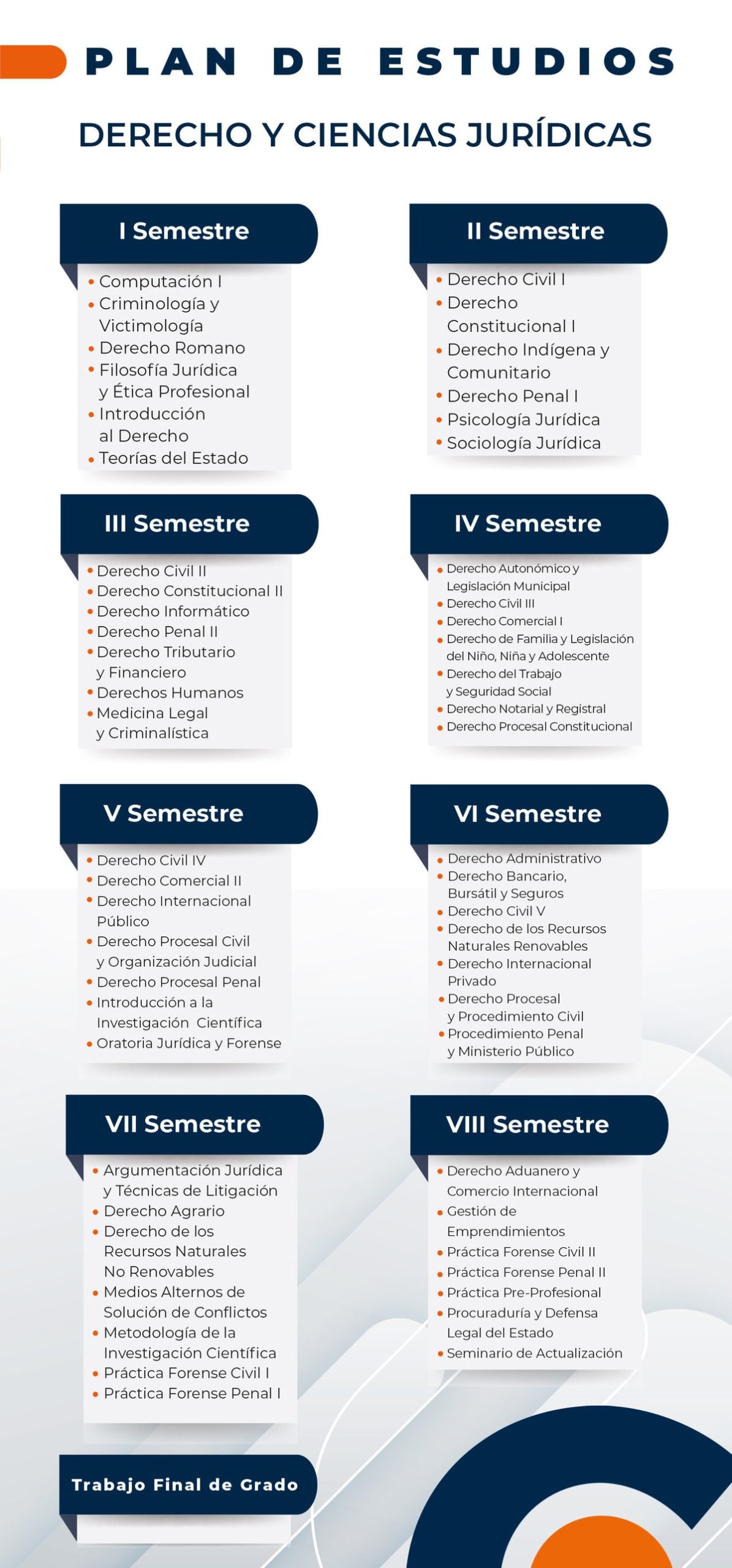 Podrás formarte como un abogado íntegro y completo, con conocimientos en áreas civil, penal, especial y corporativa; logrando mayores oportunidades de trabajo.